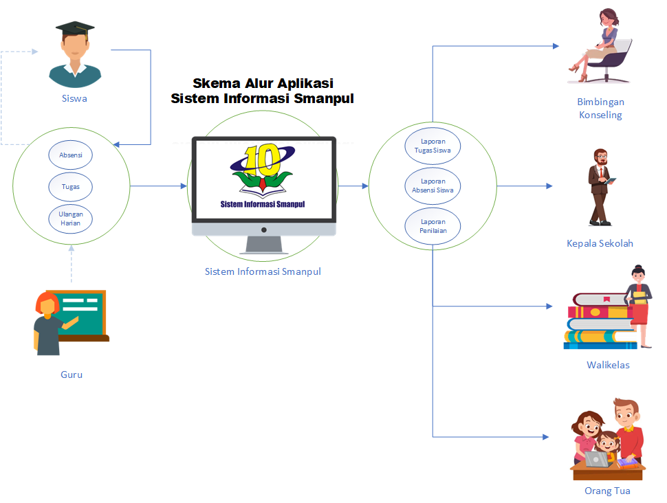 Alur kerja aplikasi Sistem Informasi Smanpul yang memudahkan pengelolaan sekolah.